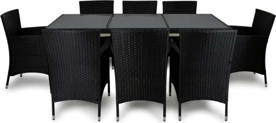 Brantevik ulkoiluryhmä, pöytä ja 8 tuolia - Musta synteettinen rottinki