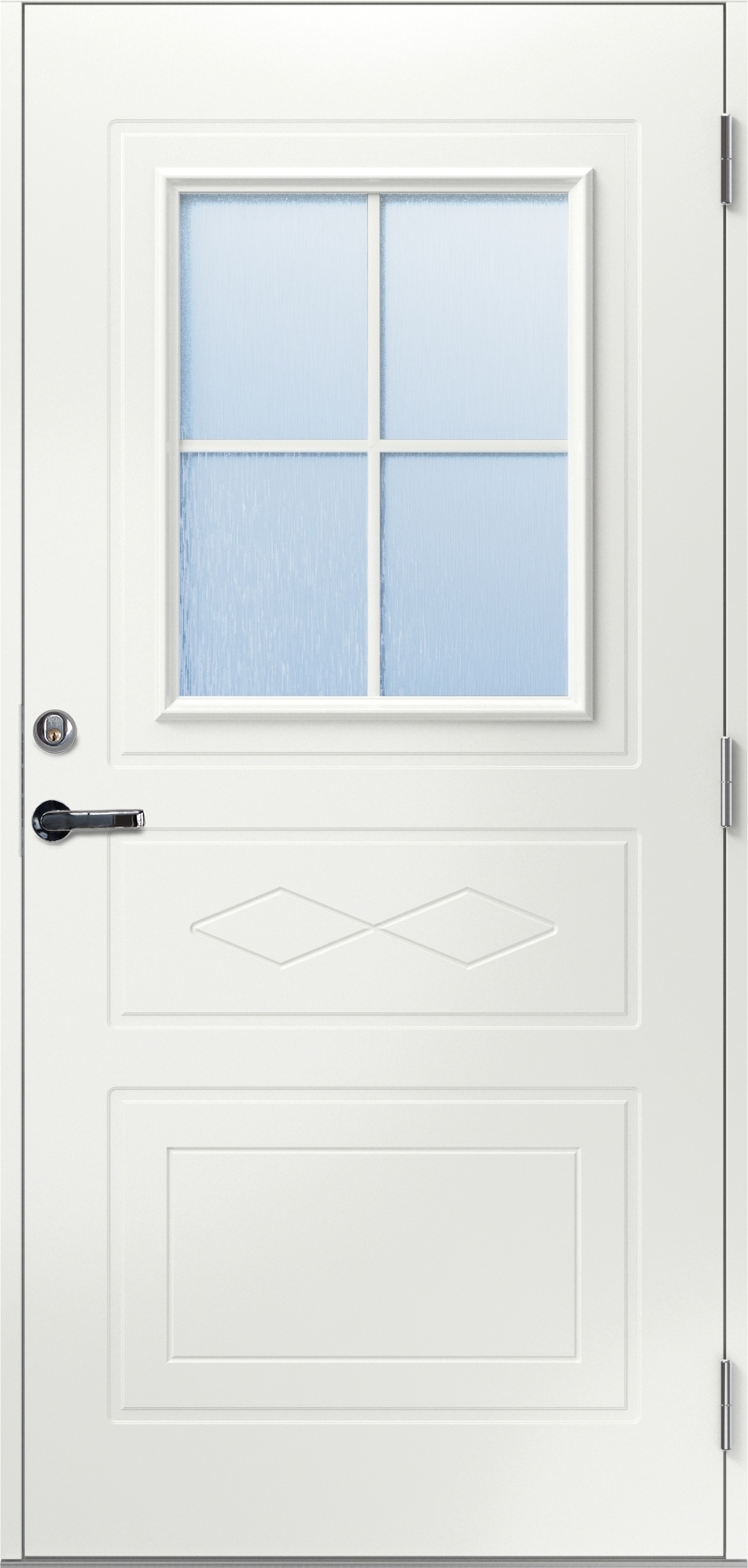 Lasinen ulko-ovi Ene on perinteinen, hyvin koristeltu ovi, jossa on kaunis muotoilukieli uritetussa kuviossa. Hieman suorakaiteen muotoisessa ikkunassa on hieno puristuslistakehys sekä uritettu viiva. Ovi sopii hyvin mökkiin sekä perinteiseen arkkitehtuuriin ja antaa julkisivullesi hieman ylimääräistä luonnetta.