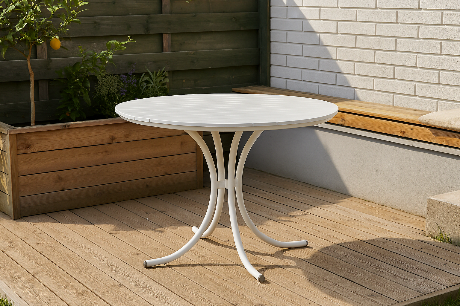 Holmsund pyöreä ulkopöytä 103 cm - Valkoinen