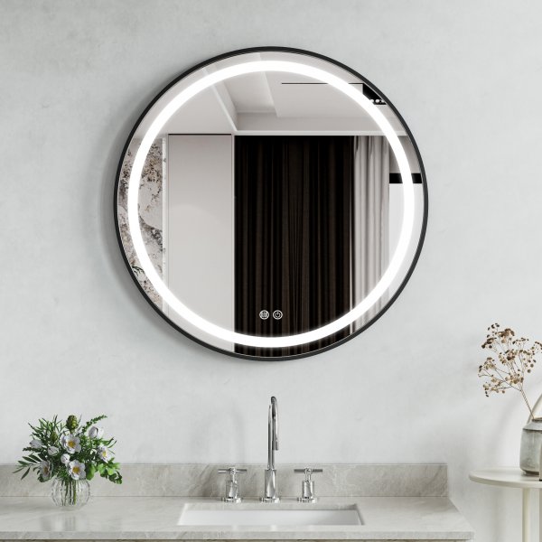 Moderni ja tyylikäs pyöreä peili mustalla alumiinirungolla. Peili on kupariton ja varustettu IP65 LED-nauhalla, joka luo tunnelmavalon. Se on myös varustettu IP44-virtalähdekotelolla ja EU-pistokkeella liittämisen helpottamiseksi. Tässä peilissä on useita käytännöllisiä ominaisuuksia, jotka tekevät siitä ihanteellisen kylpyhuoneeseesi.