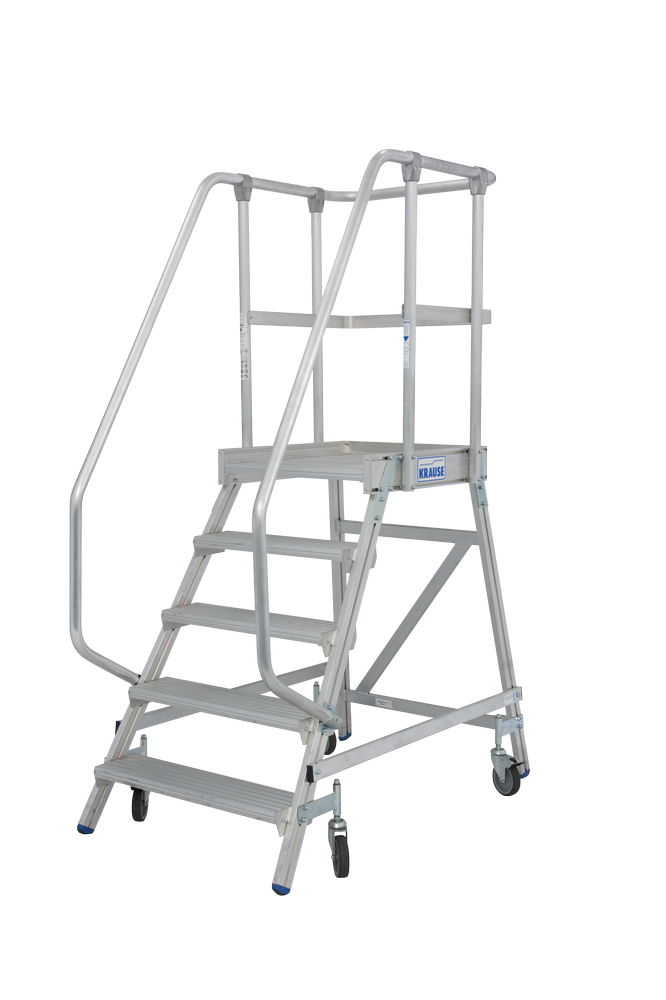 Tämä työtaso on valmistettu alumiinista, mikä tekee siitä kestävän ja vakaan. Alustassa on pyörät, jotka tekevät sen kuljettamisesta erittäin helppoa, alusta on myös muotoiltu niin, että se voi seistä lähellä hyllyjä, seiniä ja muuta. Portaissa on 5 askelmaa ja korkeus noin 2,20 metriä, mikä antaa sinulle noin 3,20 metrin työkorkeuden.