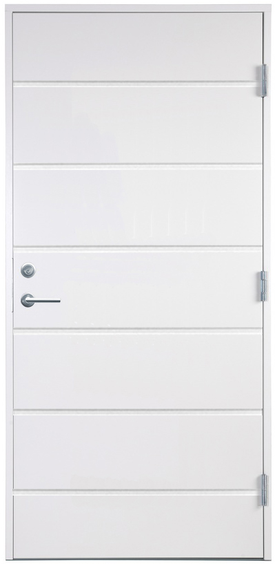 Monissa markkinoilla olevissa etuovissa on sileä sisäpuoli, mutta tällä ovella saat sekä sisä- että ulkopuolelta mukavan jyrsityn kuvion. Lisäksi siinä on kaksinkertainen tiivistenauha lisäeristystehoa varten, lukkolaatikko ja säädettävät saranat mukana.